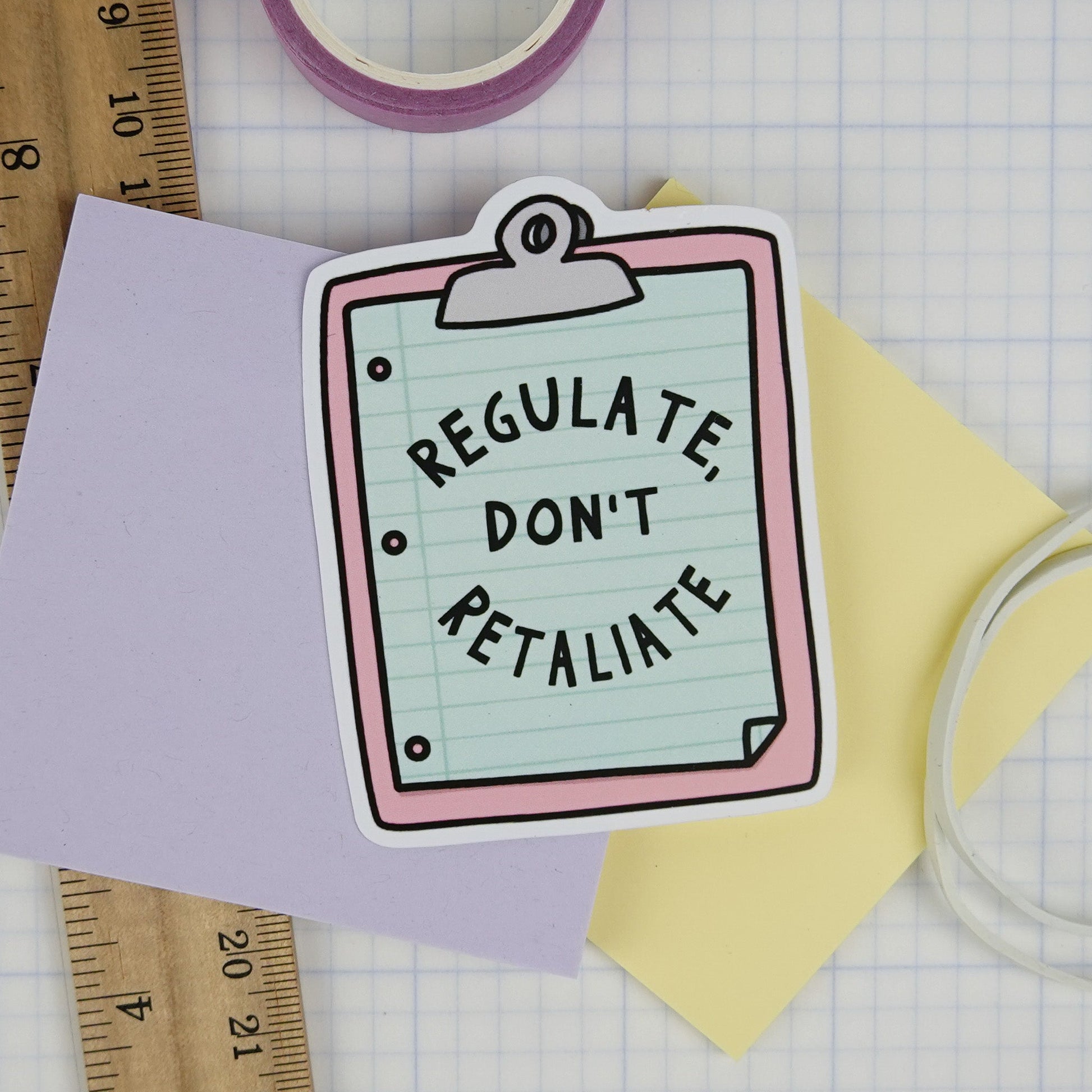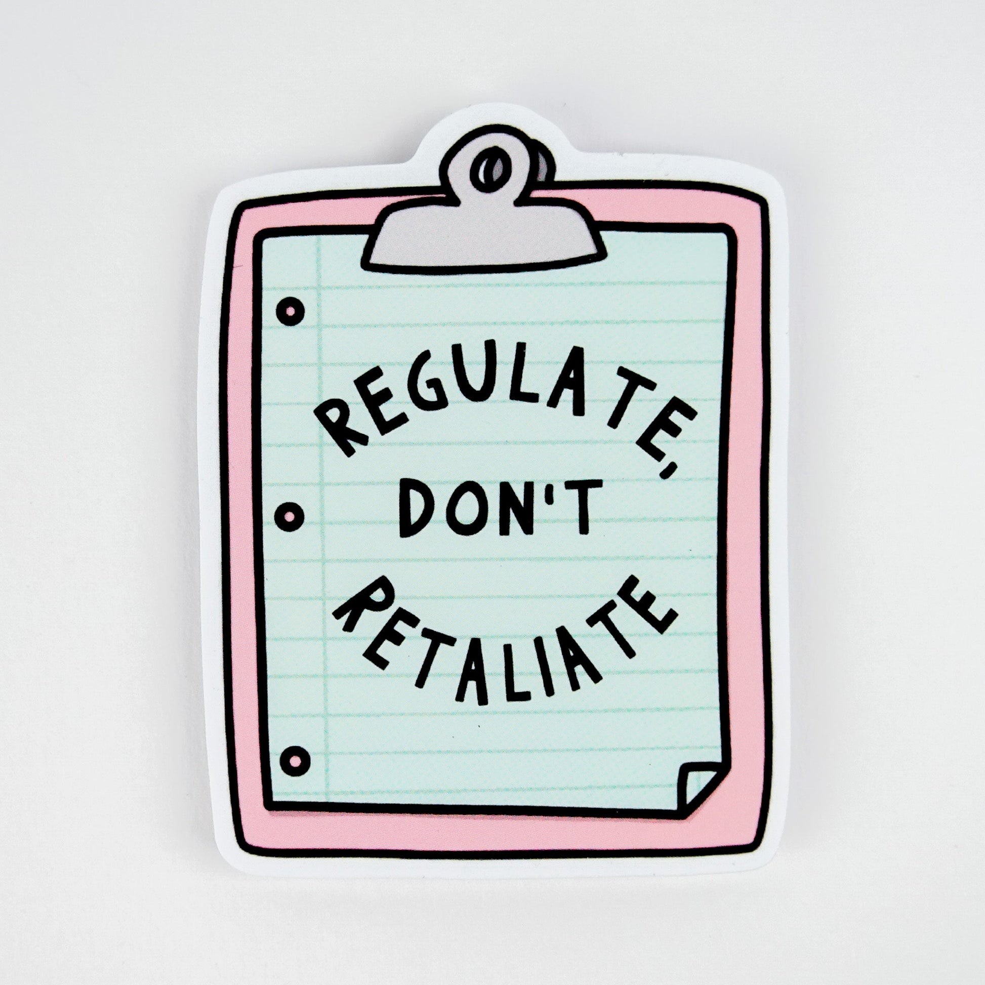 A mantra for emotional self-mastery: “Regulate, Don’t Retaliate.” This is a powerful reminder to respond - not react - especially when emotions run high. This 2" x 3" durable vinyl sticker brings a moment of mindfulness into the moment, helping you pause, breathe, and choose your next move with intention.