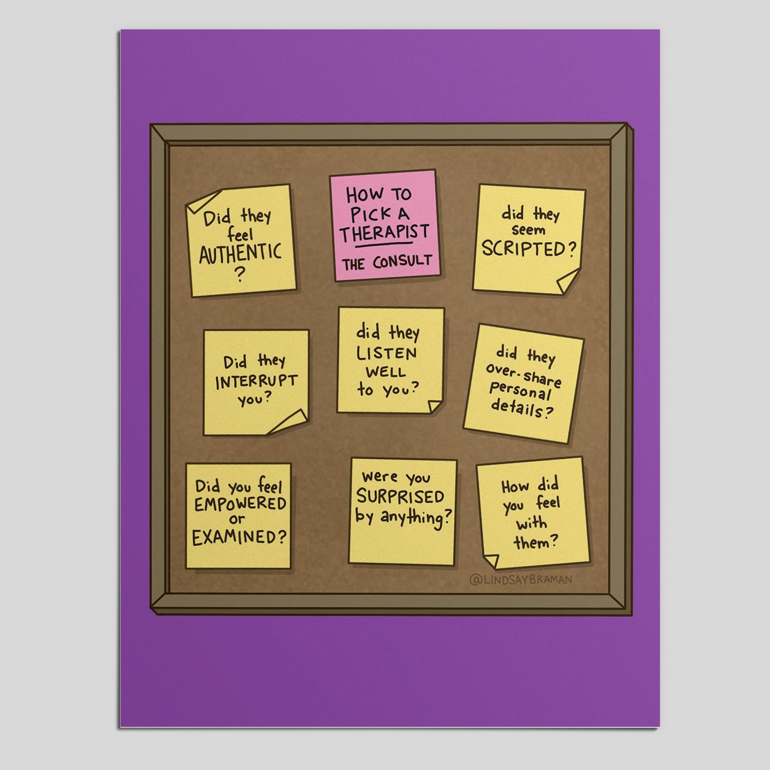 Learn More: For more information on choosing the best therapist for you, see the article: How to Choose a Therapist - Illustrated. This product is available as a free pdf for Lindsay’s Patreon members.