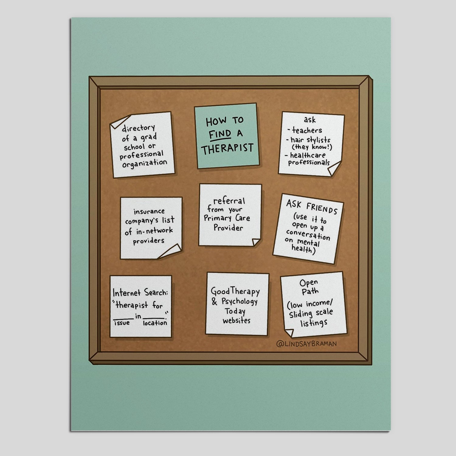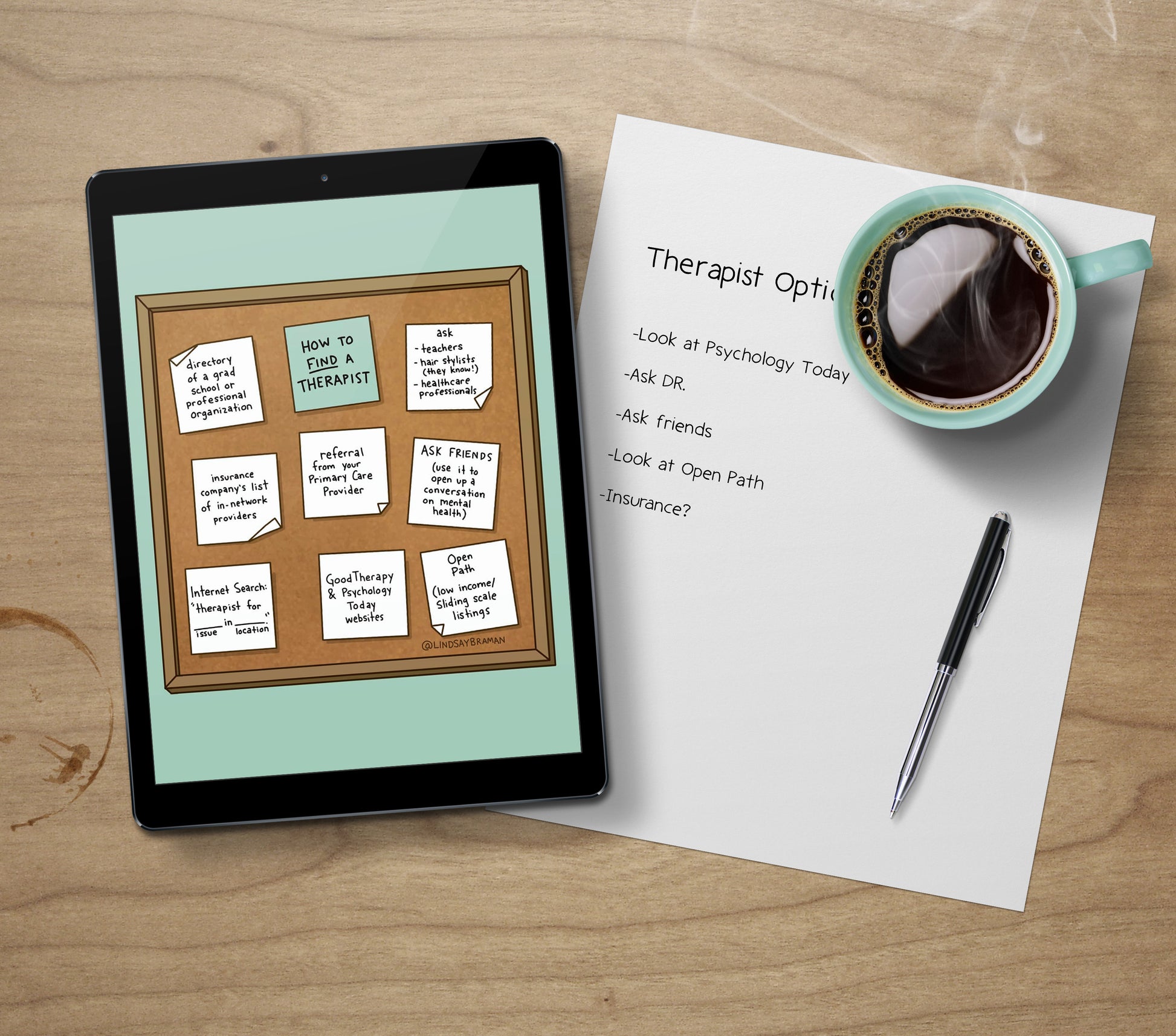 Learn More: For more information on this topic, read the article: How to Find a Therapist: Infographic. This product is available as a free pdf for Lindsay’s Patreon members.