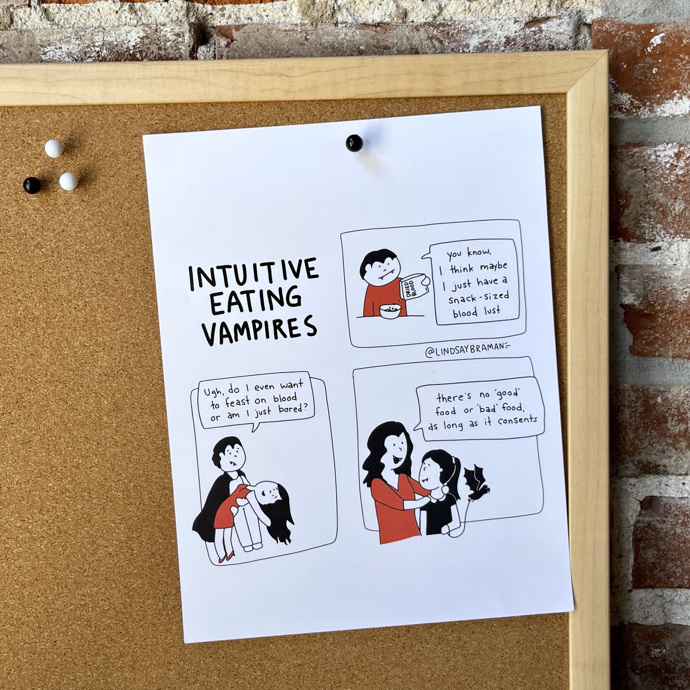 Learn More: For more information on this topic, read the article: Illustration Series: Intuitive Eating Vampires.This product is available as a free pdf for Lindsay’s Patreon members.