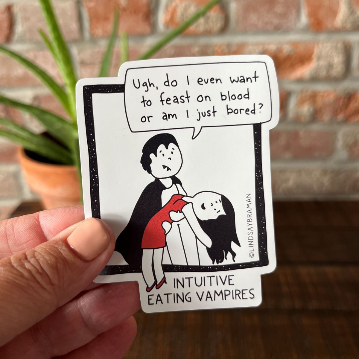 Learn More: For more information about intuitive eating, read the article: Intuitive Eating Vampires. Or, find all my resources on HAES (Health at Every Size) here.