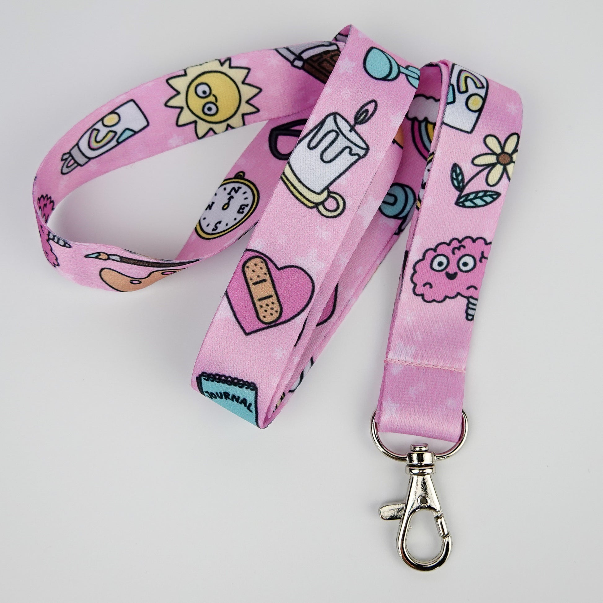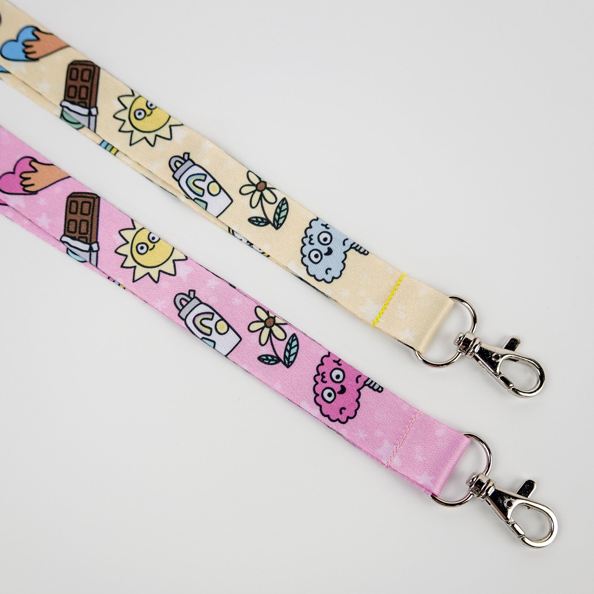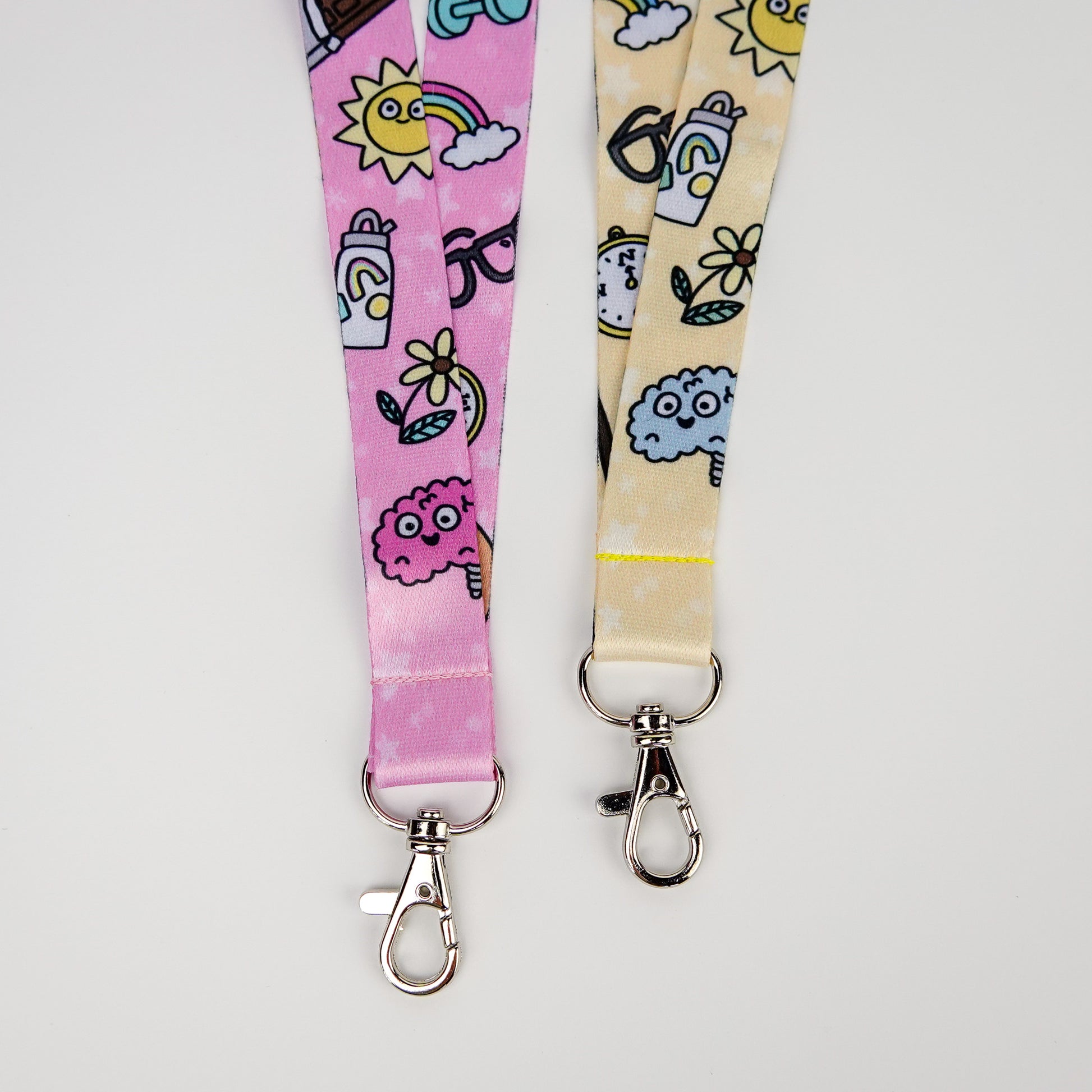 Doodled Mental Wellness Lanyard Set | 2-Piece Set: Yellow & Pink