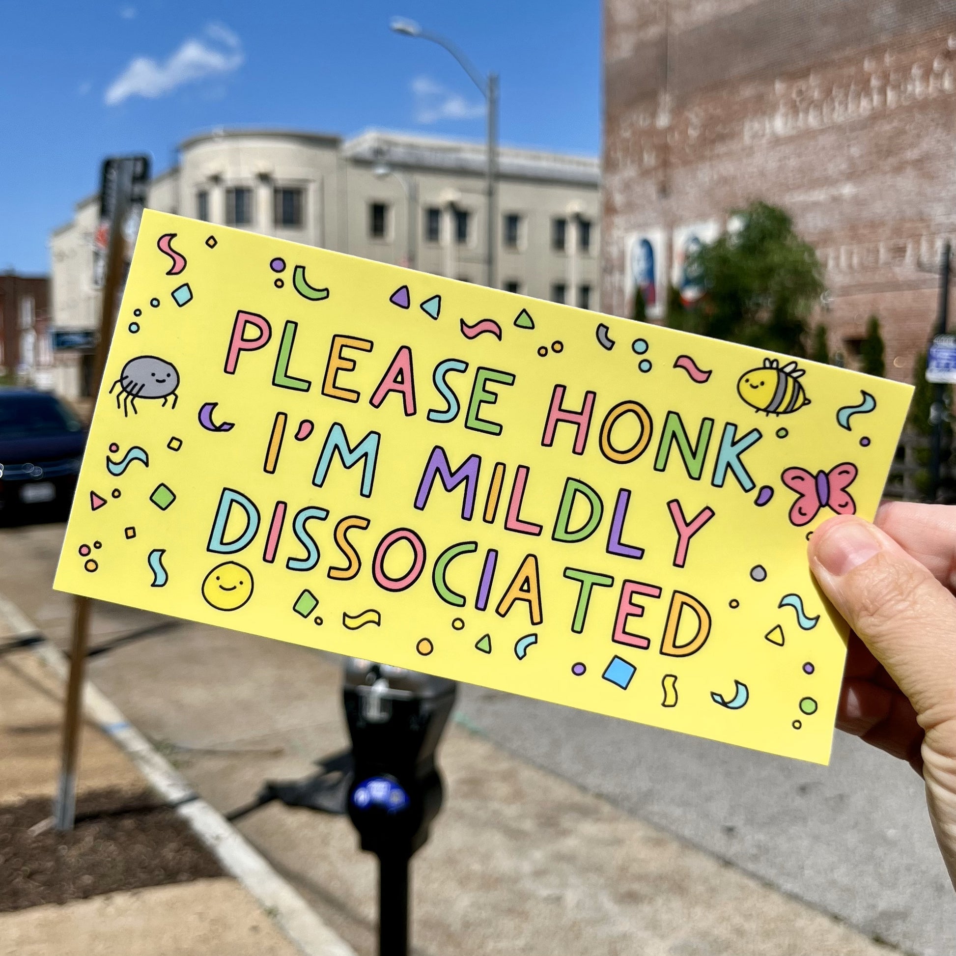 Bumper Sticker: Please Honk, I'm Mildly Dissociated