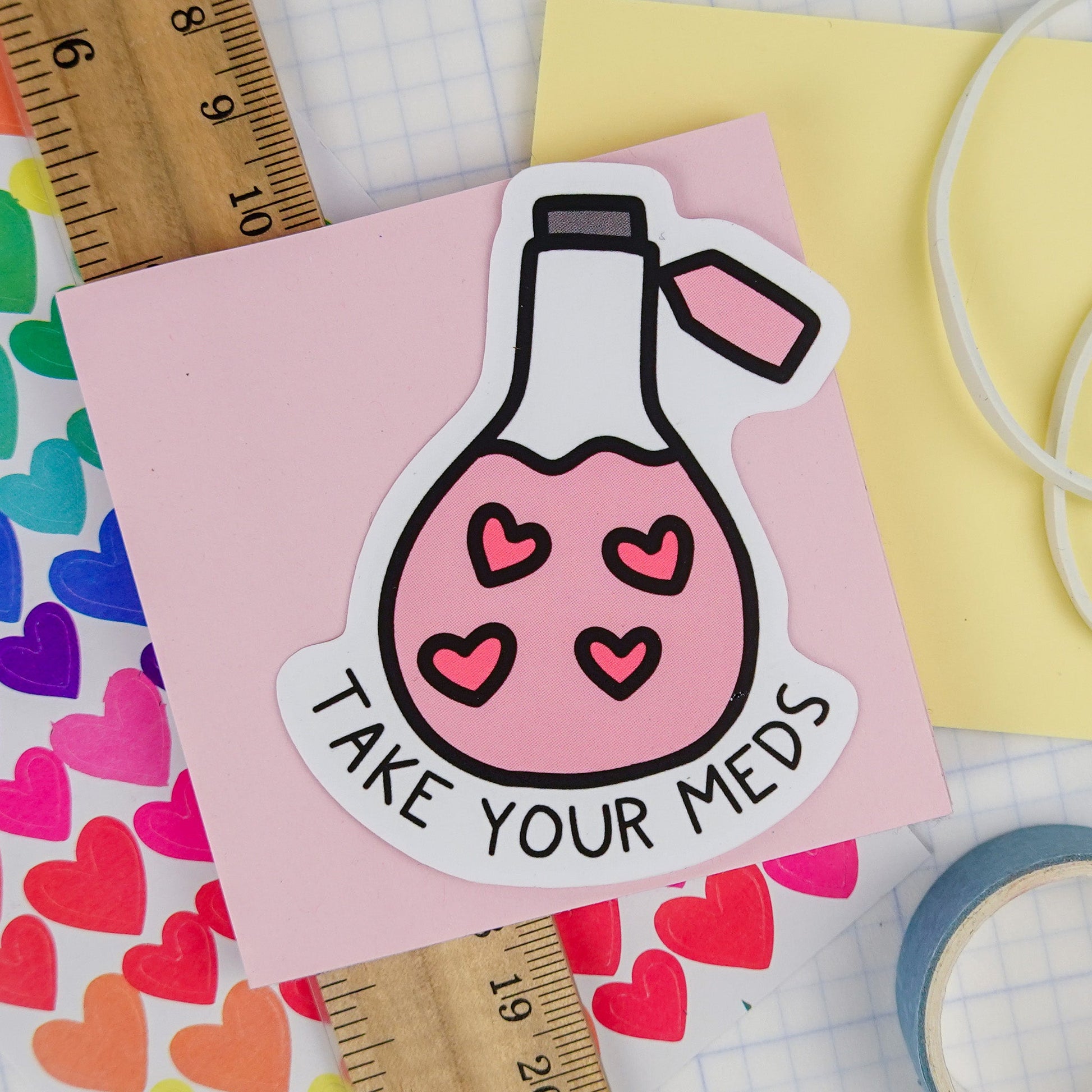 Take Your Meds is your visual reminder that self-care includes taking our medications as prescribed. This 2.5" x 3" vinyl sticker is cute and responsible.